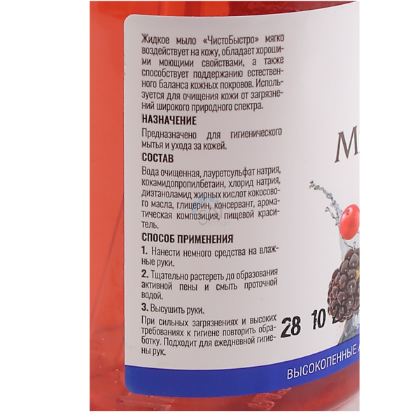 Мыло-крем жидкое 450мл Лесные ягоды с дозатором Чисто Быстро